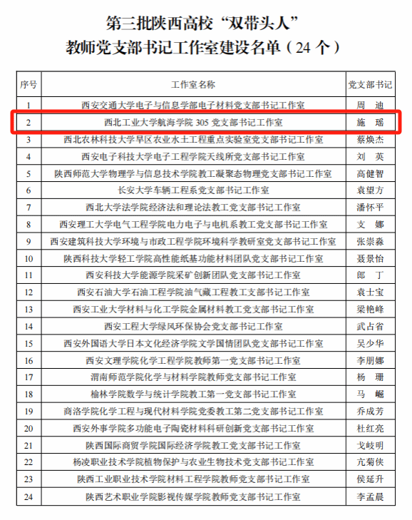近日,中共陕西省委教育工委公示了第三批陕西高校“双带头人”教师党支部书记工作室建设名单,必赢bwin线路检测中心305党支部书记工作室成功入选建设名单。这是305党支部继2022年获批“全国党建工作样板支部”后,获得的又一殊荣。该支部的成功入选充分展示了近年来学院在校党委的坚强领导下,扎实推进教师党支部“双带头人”培育工程,坚持“政治强、业务强、合力强”标准,不断提升党支部书记“胜任力、凝聚力和战斗力”,着力打造一支党建和业务双融合、双促进的党支部书记队伍的丰硕成果。
